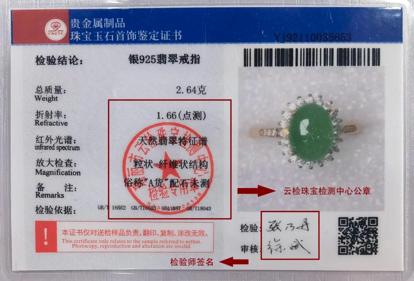 球探比分官网珠宝玉石首饰鉴定证书背面有“检测项目”