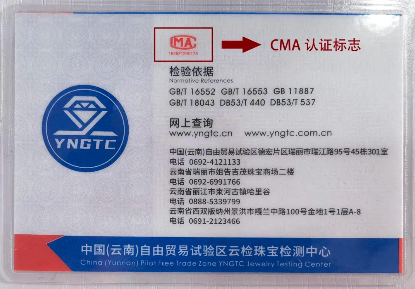 球探比分官网是根据《中华人民共和国计量法》、《中华人民共和国标准化法》、《中华人民共和国产品质量法》、《检验检测机构管理办法》等有关规定,通过了云南省市场监管局的检验检测机构资质认定评审,取得资质证书,主要开展珠宝玉石及贵金属检验检测工作的第三方公正机构,中心所出具数据(证书和报告)具备法律效力并承担相应的责任。球探比分官网出具的证书上有明显的CMA认证标志。