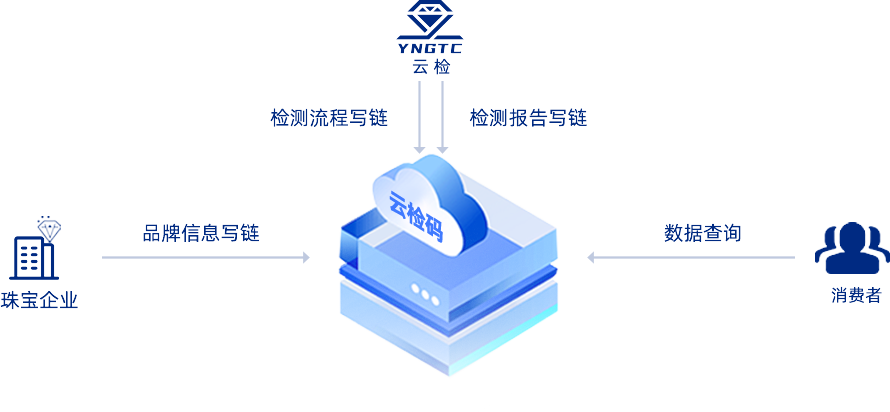 “全链路数智化保真”主要解决的问题是检测环节的强信用背书,目前正在快速推动“云检码”落地。通过“云检码”,运用码链溯源技术,将监管机构、商家、消费者、云检链接起来,达成多方共识,多主体形成信用互认;联通检测上下游链路,将品牌信息、送检信息、检测全流程信息赋码写链,数据不可篡改,为每件珠宝打造唯一的高信任度的“数字身份证”,真正实现“一物一证一码一链”;消费端,通过一码查询,数字身份证全链信息一目了然。“云检码”就是要通过“品牌可追溯,流程可跟踪,信息可查询,质量有保障”的质检管控体系,实现珠宝品牌、检测证书可信可查,最终解决“溯源、求真、查重、再循环”是市场需求。同时,云检还在打造“云上送检”服务,将线上线下打通,实现一站式的检测服务。