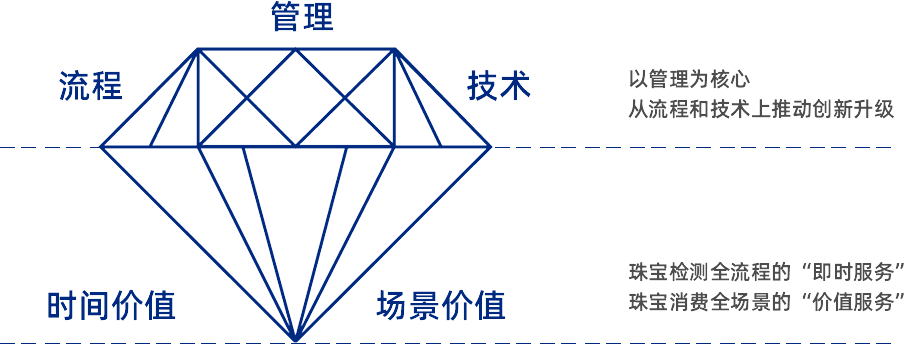 成立10年来,云检始终以专业化、高质量和全方位的服务赢得客户信任。服务不仅要给客户温度,更要为客户提供价值,以价值增值为出发点,云检打造了自己的“钻石服务模型”,实现珠宝检测全流程的“即时服务”,珠宝消费全场景的“价值服务”。